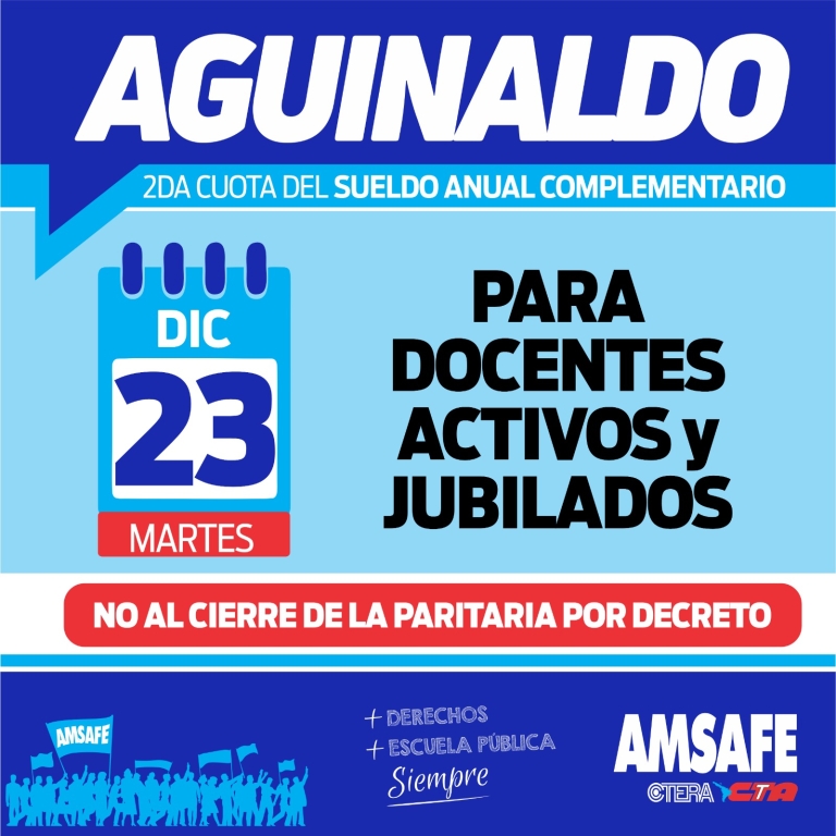 Por último, queremos recordar y homenajear a todxs quienes con su aporte intelectual y militante fortalecieron a la AMSAFE a lo largo de su historia, que hoy cuenta con casi 50.000 afiliadxs y más de 5.000 delegadxs gremiales, y como siempre expresamos están presentes en cada una de nuestras luchas, entre los que se encuentran lxs compañerxs detenidxs desaparecidxs en la dictadura cívico militar que son un verdadero faro que orienta cada acción sindical hacia mejores condiciones para enseñar y aprender en la escuela pública.